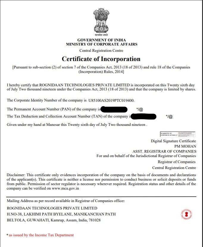 Address: Rognidaan Technologies Private Limited Manikanchan Path Beltola H.no-38, Lakhimi Path Byelane 781028 Guwahati-kamrup